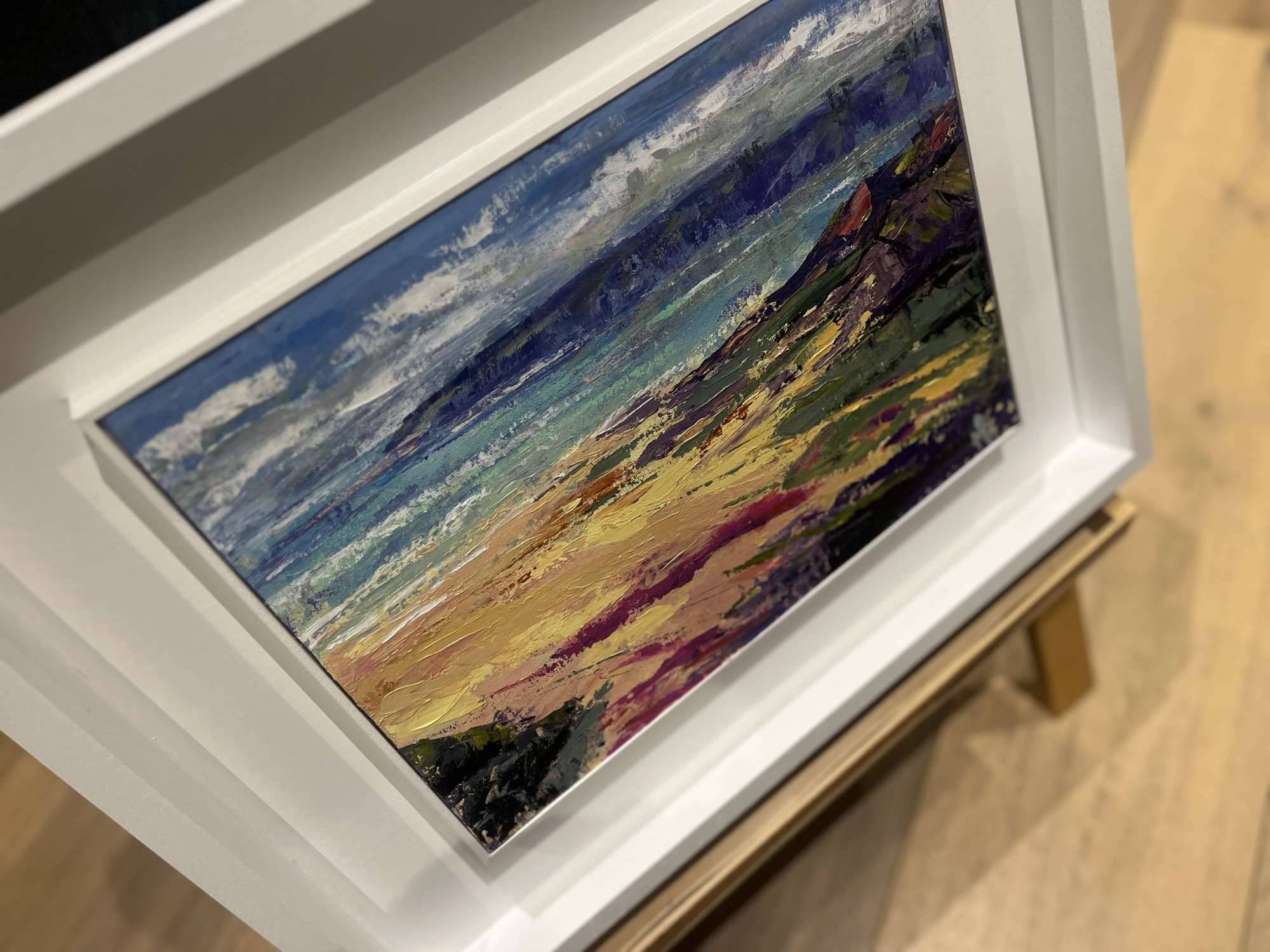 Another favourite cove on a very sunny day, where I wanted to use the magenta next to the green to convey the brightness of the colours popping against the blue sky and sea backdrop.